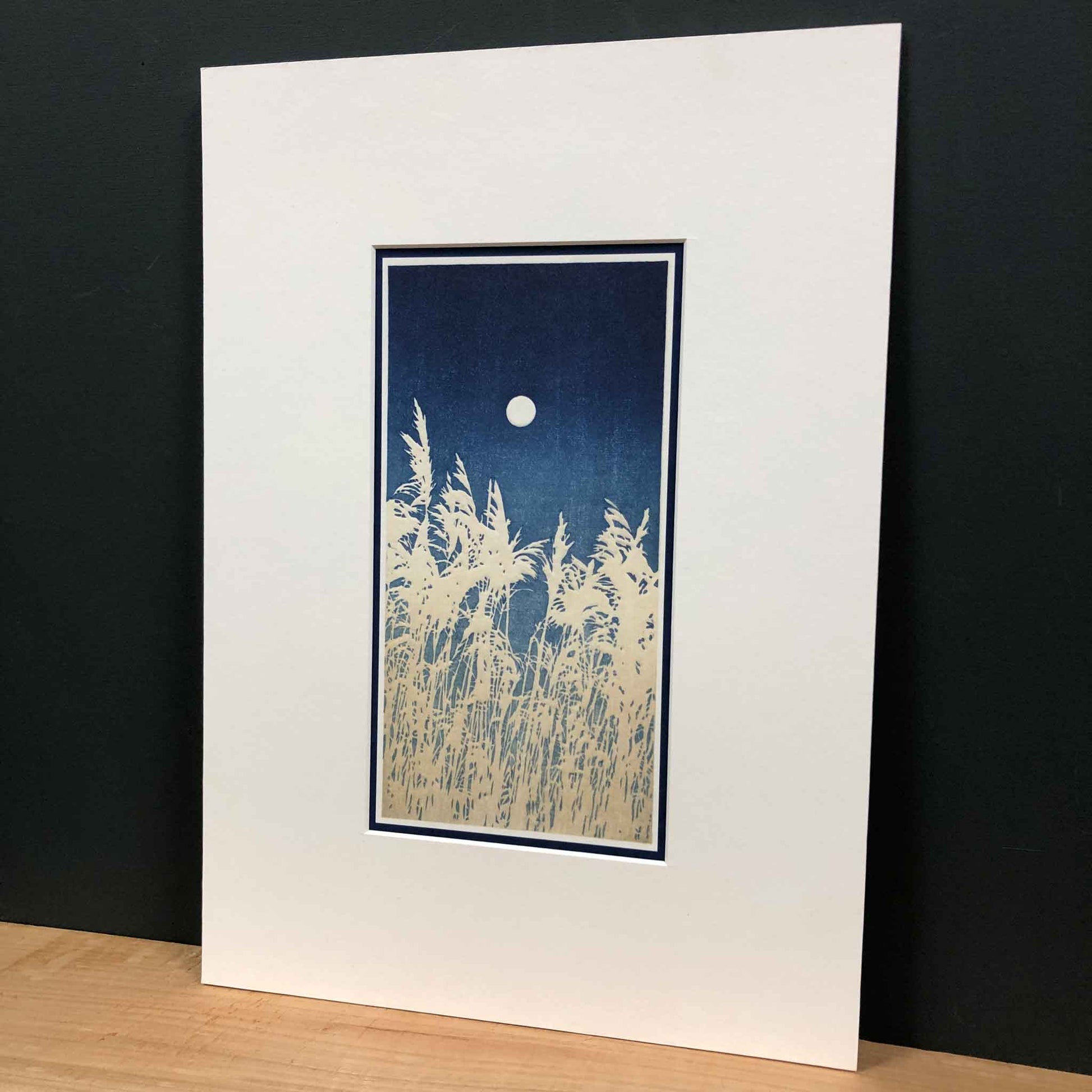 Autumn Calm – "Reeds Under a Full Moon" Fine Art Mounted Print