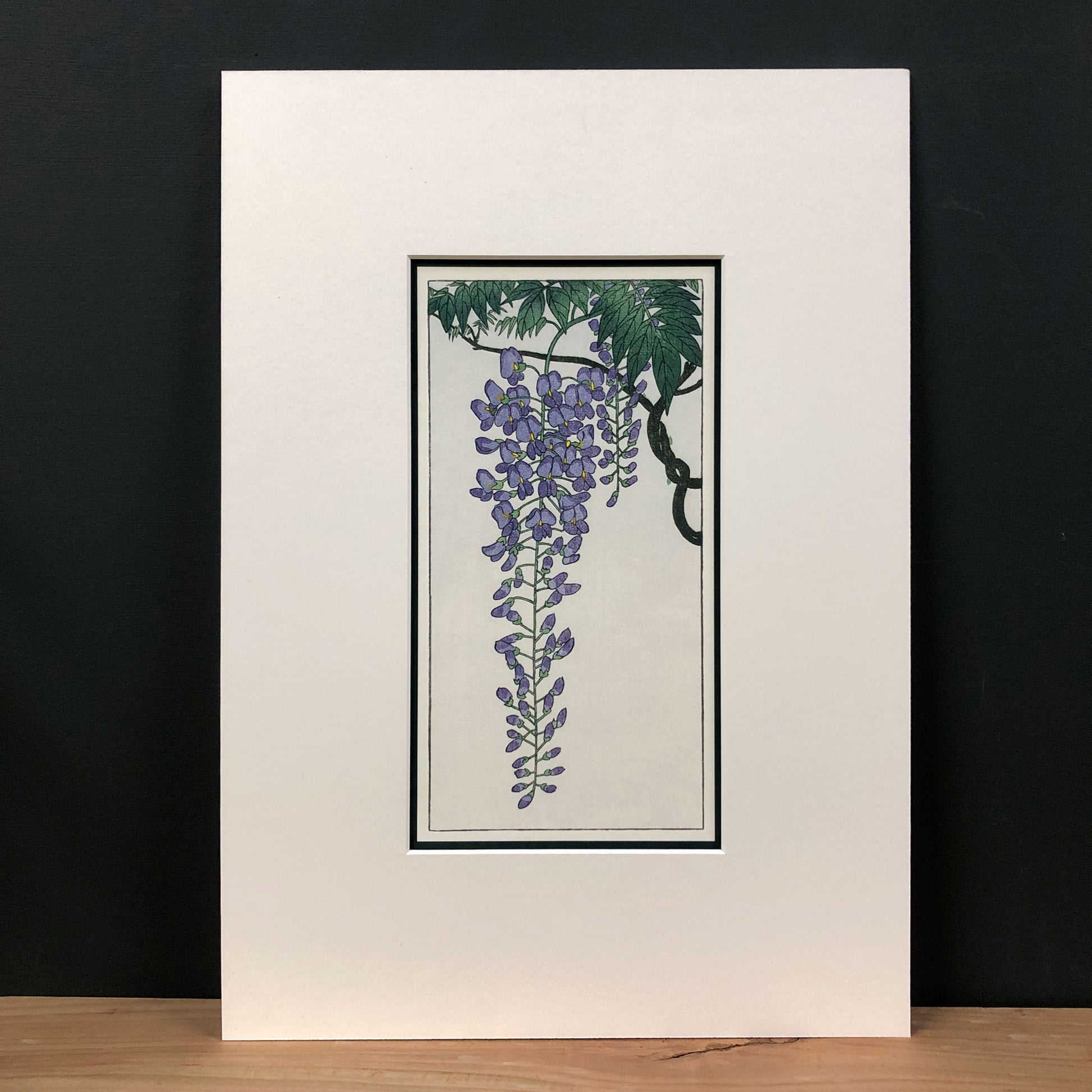 Conjure a sense of spring at any time of the year - for you, or as a gift. This Japanese floral design is based on Koson's intricate depiction of a flowering wisteria. I carved and printed a version myself, and this is a ready-mounted giclée fine art print of my interpretation.